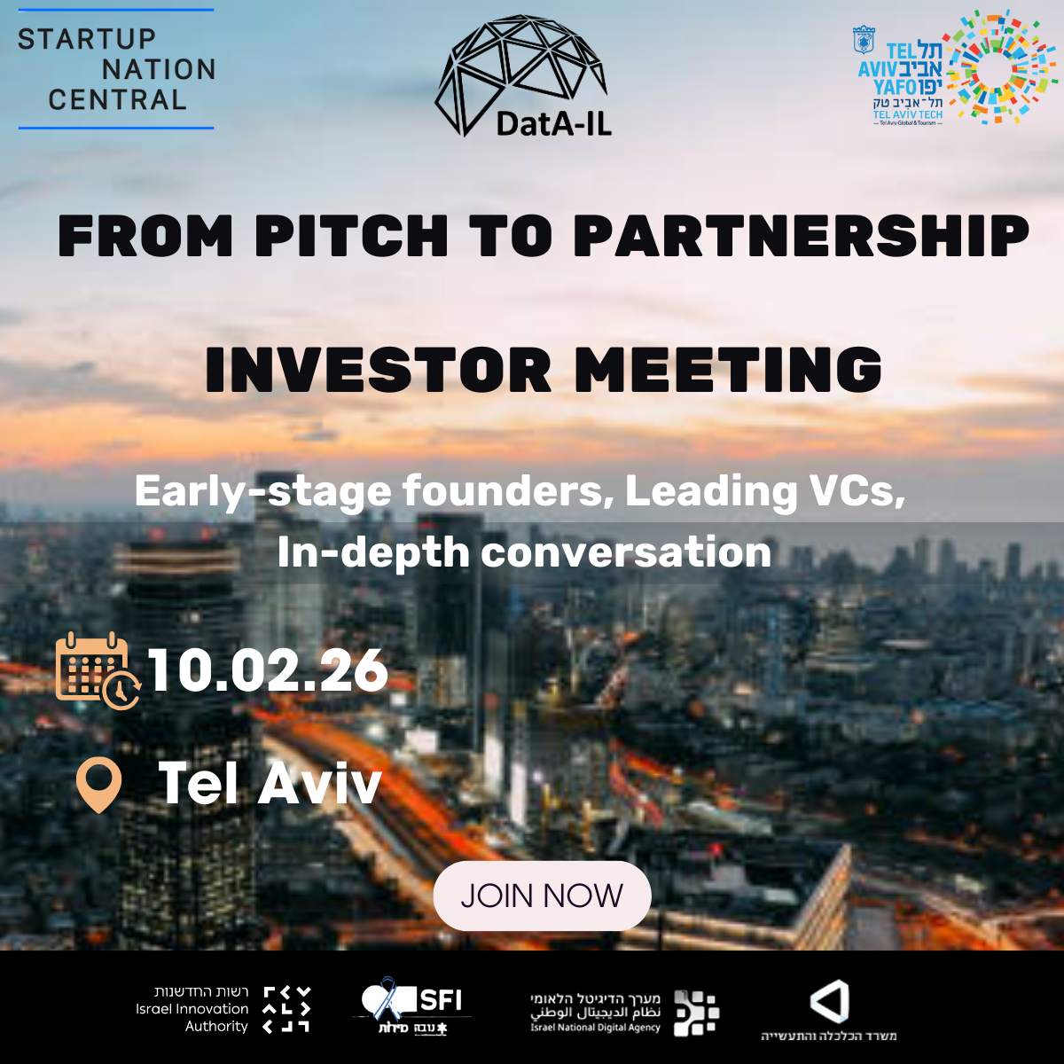 DatA-IL, together with SNC and Tel Aviv Tech, invites AI & Data founders to a curated investors event designed to create real, high-value connections with leading venture capital funds in Israel.